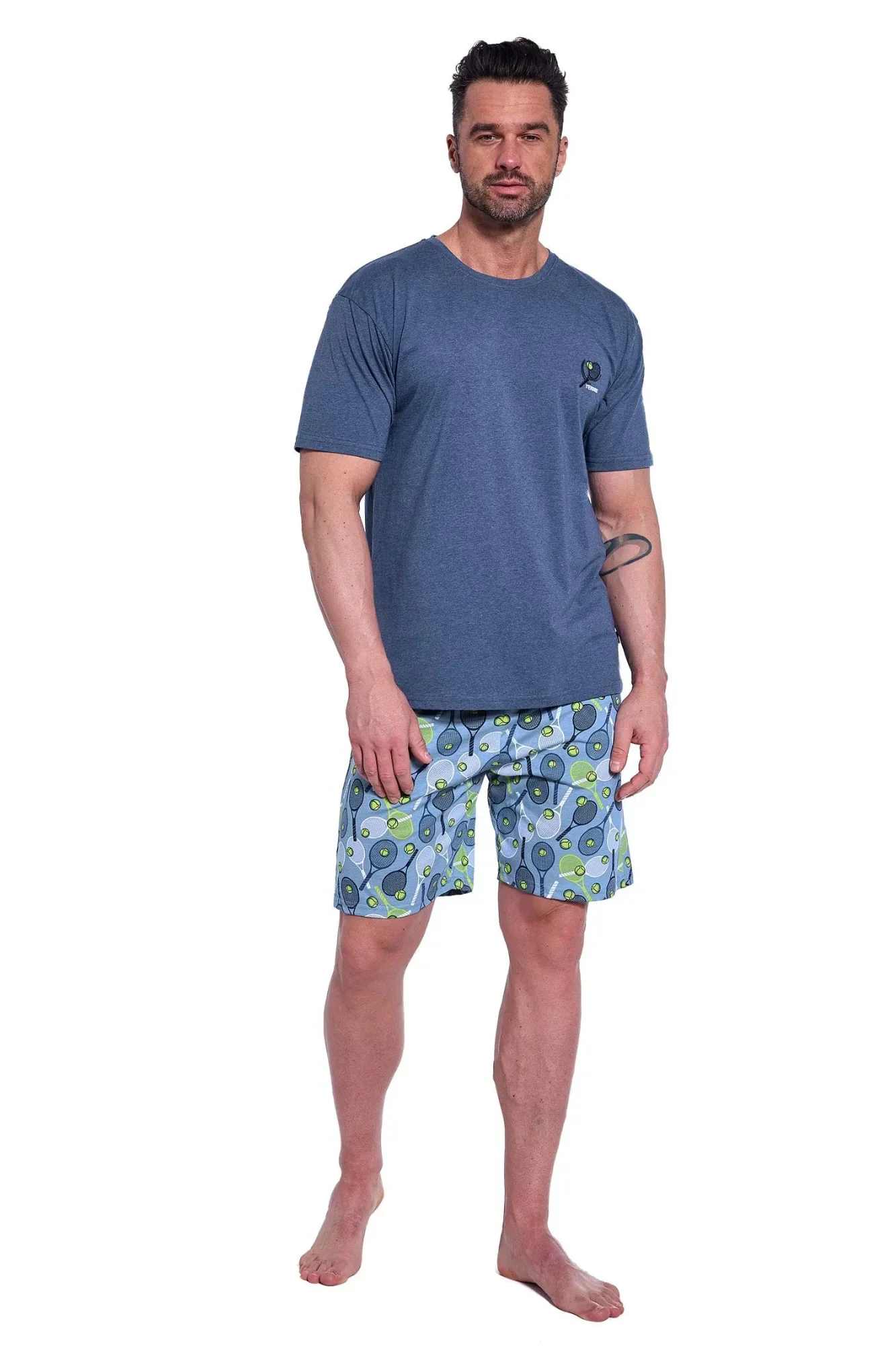 Pánské pyžamo 326/173 Tennis CORNETTE - z vysoce jakostní bavlny - džínové tričko s krátkými rukávy - půlkulatý výstřih - ozdobené potiskem na přední straně - vzorované kraťasy