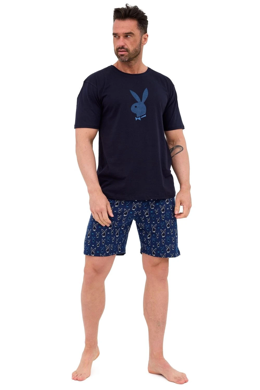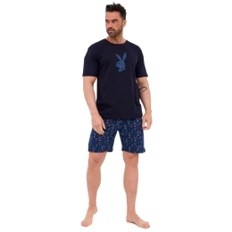 Pánské pyžamo 326/190 Rabbit CORNETTE - z vysoce jakostní bavlny - tmavě modré tričko s krátkými rukávy - půlkulatý výstřih - ozdobené potiskem na přední straně - vzorované kraťasy