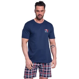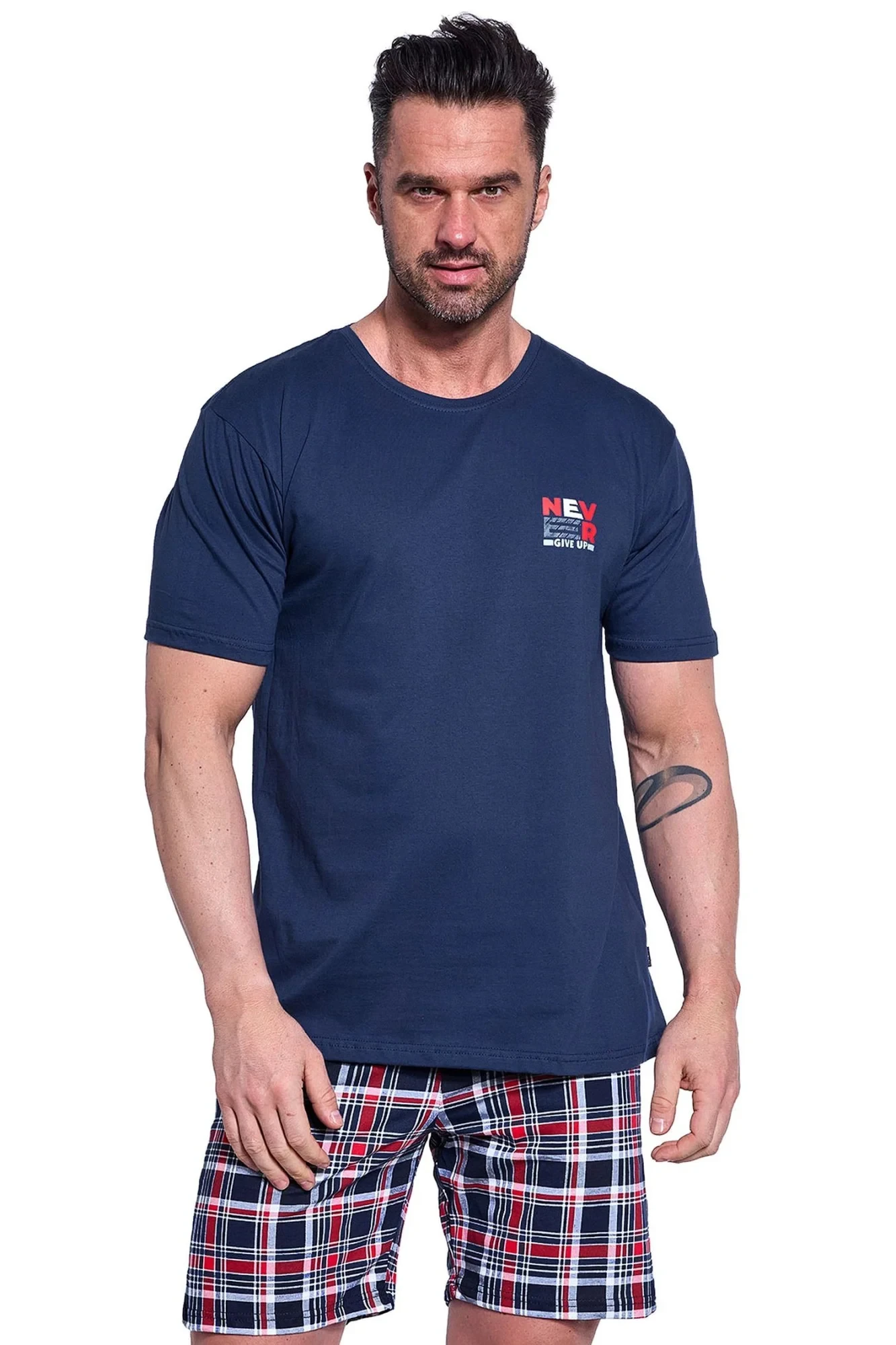 Pánské pyžamo 326/286 Never 3 CORNETTE - z vysoce jakostní bavlny - džínové tričko s krátkými rukávy - půlkulatý výstřih - ozdobené potiskem na přední straně - kárované kraťasy