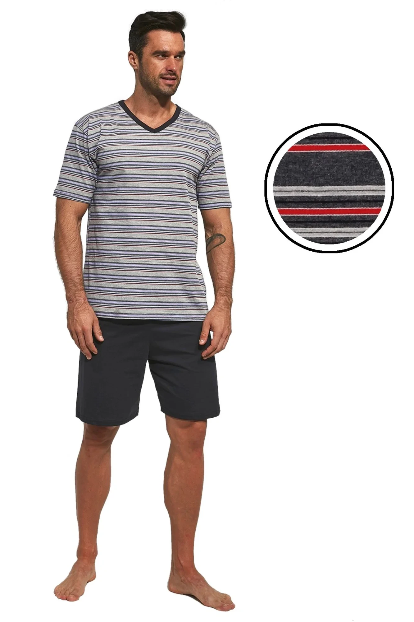 Pánské pyžamo 330/34 Various CORNETTE - grafitová barva - z vysoce jakostní bavlny - pruhované tričko s krátkými rukávy - jednobarevné kraťasy