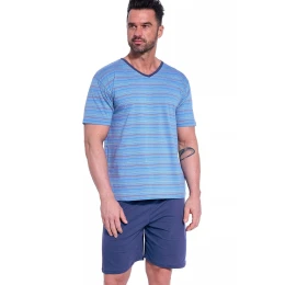 Pánské pyžamo 330/42 Various CORNETTE - světle modrá barva - z velmi kvalitní bavlny - pruhované tričko s krátkými rukávy - jednobarevné kraťasy