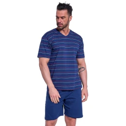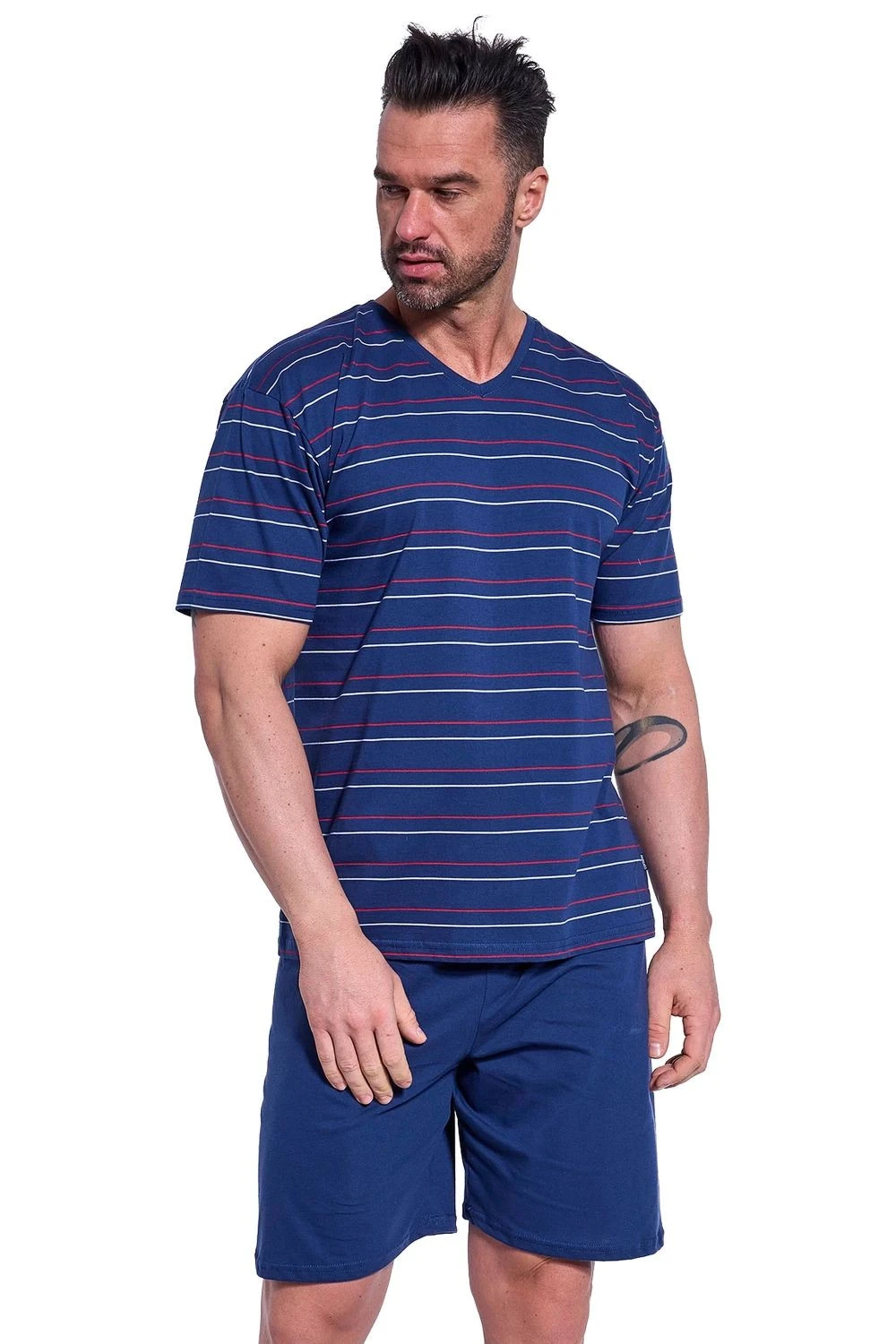 Pánské pyžamo 330/48 Various CORNETTE - tmavě modrá barva - z velmi kvalitní bavlny - pruhované tričko s krátkými rukávy - jednobarevné kraťasy