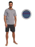 Pánské pyžamo 338/37 Various CORNETTE - světle modrá barva - z velmi kvalitní bavlny - pruhované triko s krátkými rukávy - pohodlné jednobarevné kraťasy