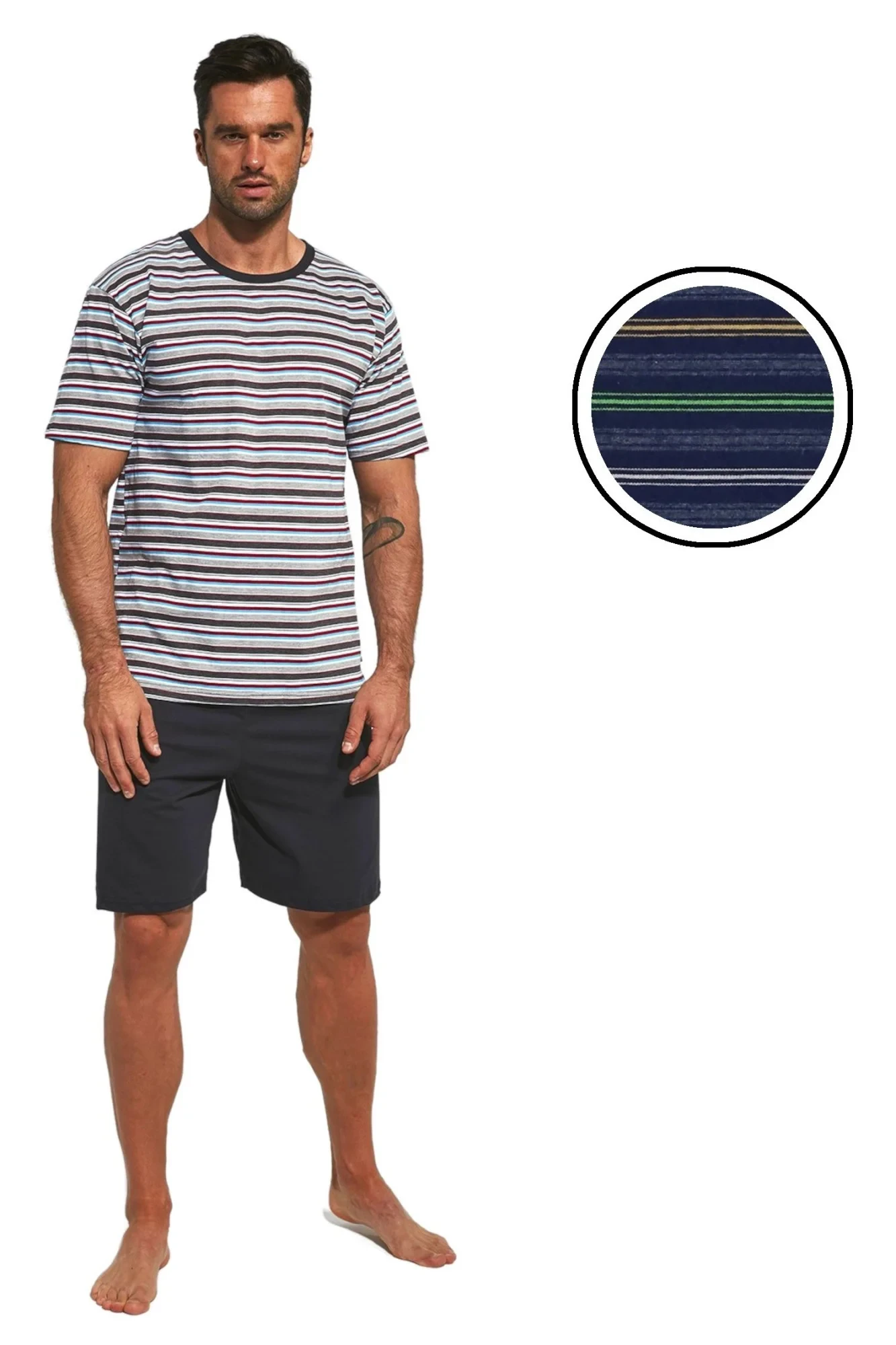 Pánské pyžamo 338/38 Various CORNETTE - tmavě modrá barva - z velmi kvalitní bavlny - pruhované triko s krátkými rukávy - pohodlné jednobarevné kraťasy