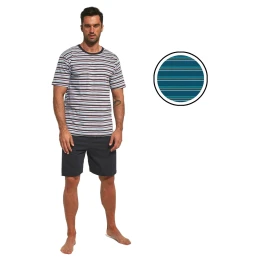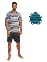 Pánské pyžamo 330/42 Various CORNETTE - světle modrá barva - z velmi kvalitní bavlny - pruhované tričko s krátkými rukávy - jednobarevné kraťasy