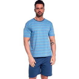 Pánské pyžamo 338/47 Various CORNETTE - světle modrá barva - z vysoce jakostní bavlny - pruhované tričko s krátkými rukávy - pohodlné jednobarevné kraťasy