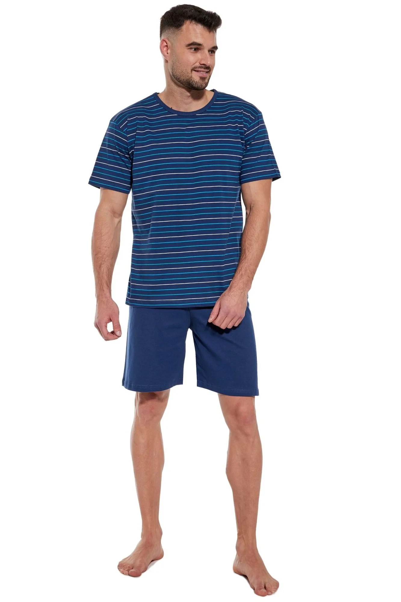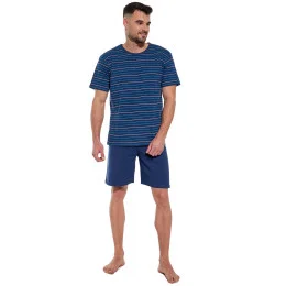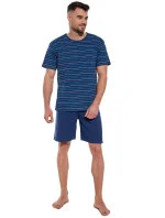 Pánské pyžamo 338/48 Various CORNETTE - tmavě modrá barva - z velmi kvalitní bavlny - pruhované tričko s krátkými rukávy - pohodlné jednobarevné kraťasy