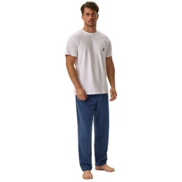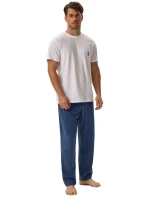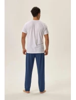 Pánské pyžamo 41918 Head HENDERSON - z vysoce jakostní bavlny - tričko bílé barvy s krátkými rukávy - na přední straně zdobené potiskem - dlouhé jednobarevné kalhoty