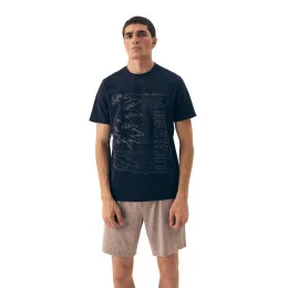 Pánské pyžamo 42598 Surf blue HENDERSON - z vysoce jakostní bavlny - tmavě modré tričko s krátkými rukávy - zdobené potiskem na přední straně - jednobarevné kraťasy - široký elastický pás