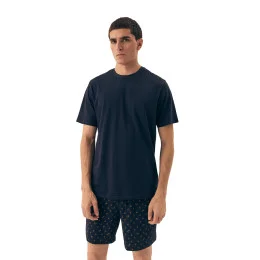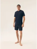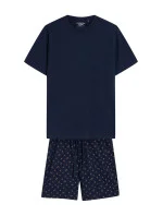 Pánské pyžamo 42601 Shore dark blue HENDERSON - z vysoce jakostní bavlny - tmavě modré tričko s krátkými rukávy - vzorované šortky - elastický pas se zavazováním na šňůrku