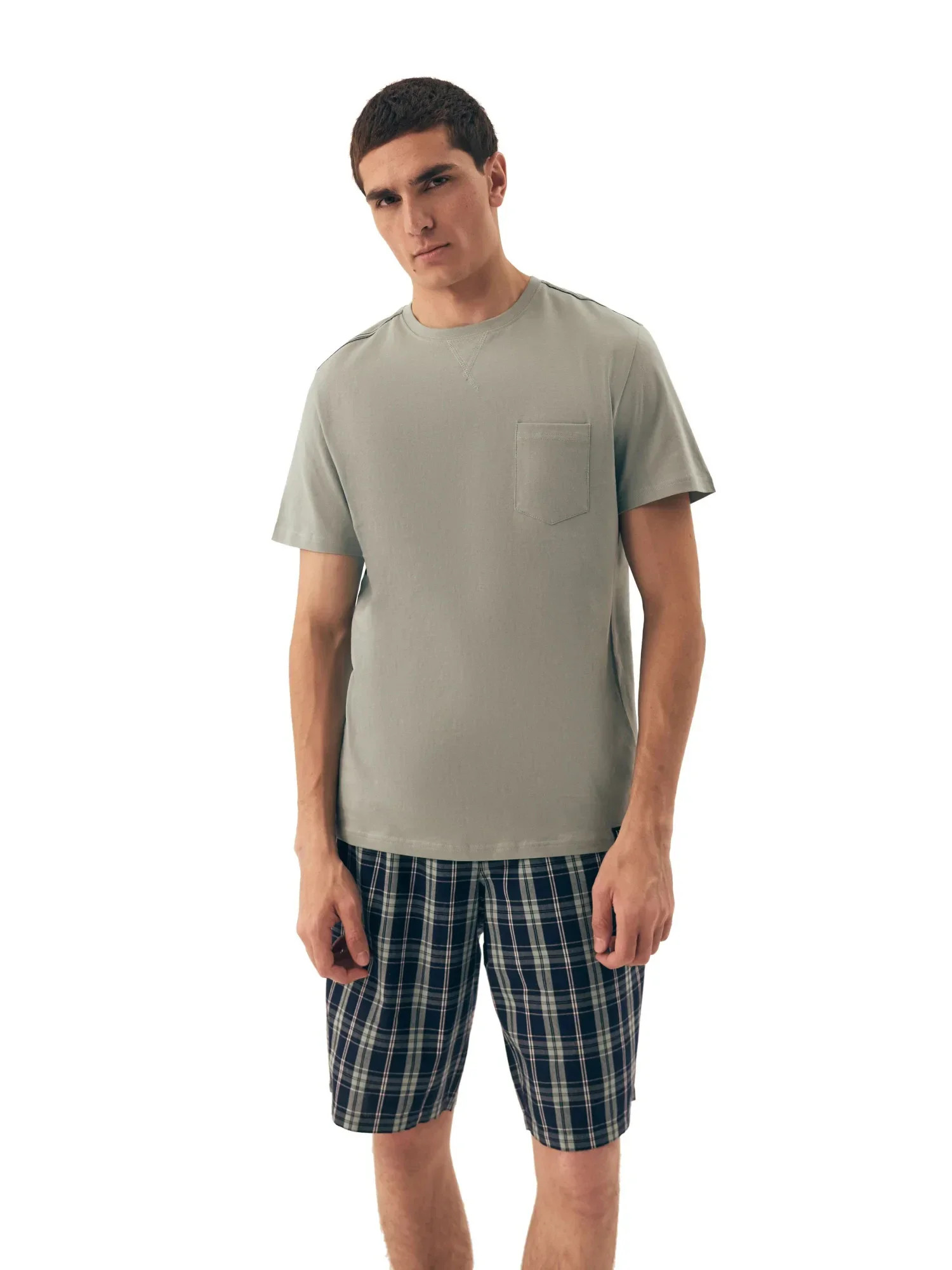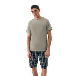 Pánské pyžamo 42617 Dexter HENDERSON - z vysoce jakostní bavlny - zelené tričko s krátkými rukávy - zdobené kapsičkou na přední straně - kárované šortky - elastický pas se šňůrkou