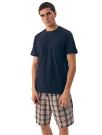 Pánské pyžamo 42617 Dexter HENDERSON - z vysoce jakostní bavlny - tmavě modré tričko s krátkými rukávy - zdobené kapsičkou na přední straně - kárované šortky světlé barvy - elastická guma se šňůrkou