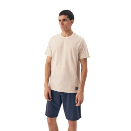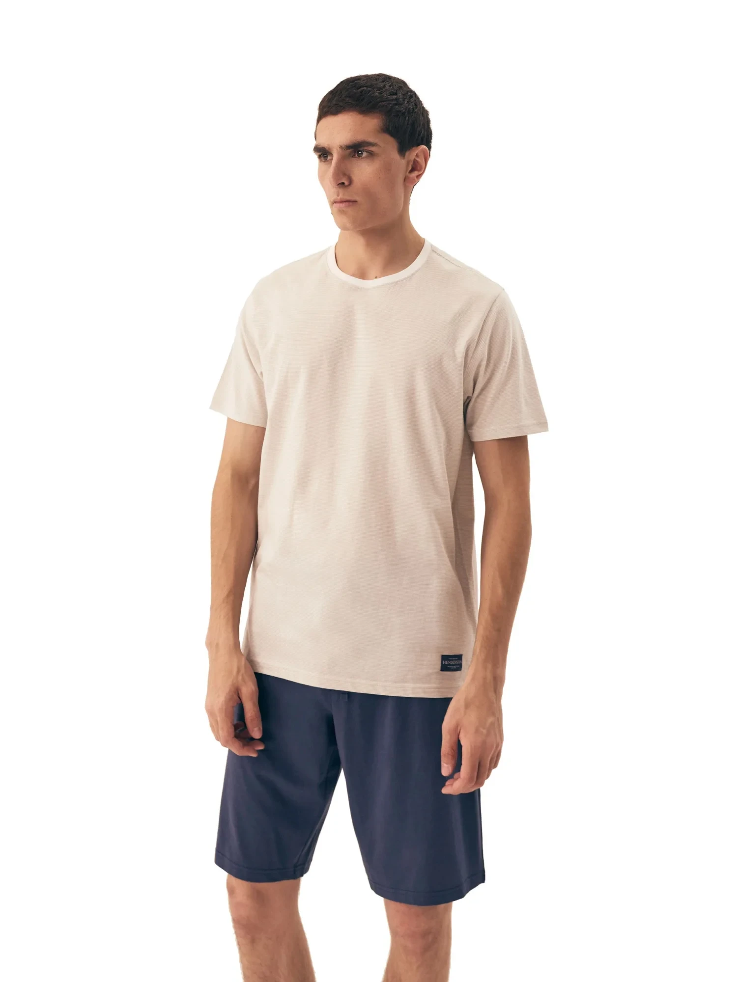 Pánské pyžamo 42633 Dive white HENDERSON - z vysoce jakostní bavlny - bílé tričko s krátkými rukávy - jednobarevné kraťasy - široký elastický pás se stahovací šňůrkou