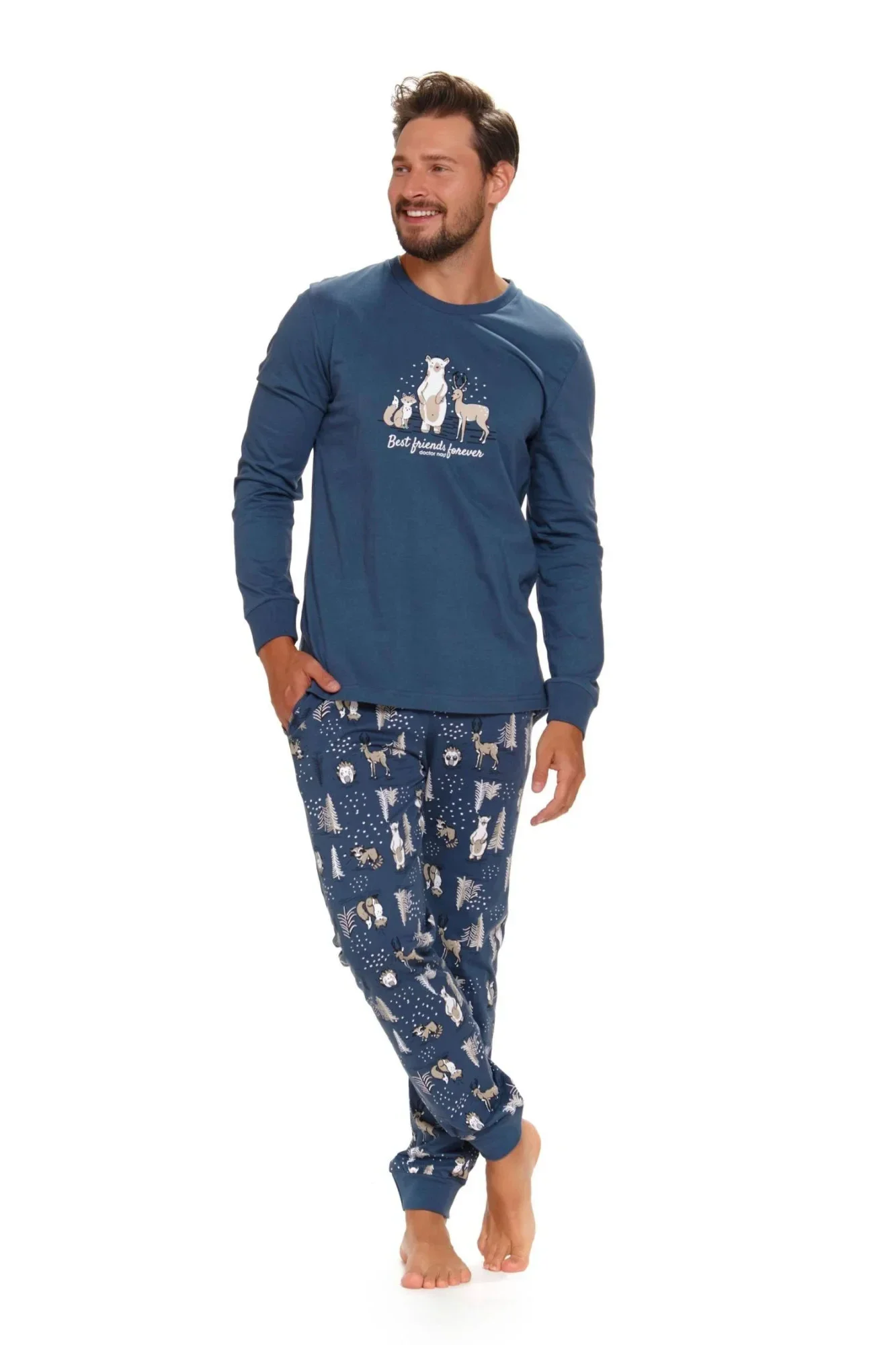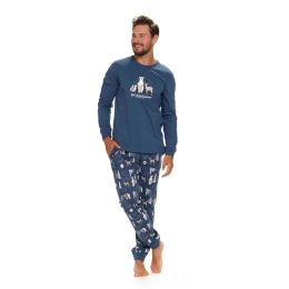 Pánské pyžamo 4329 Doctor Nap - vyrobené z velmi kvalitní a příjemné bavlny - modré tričko s dlouhými rukávy - na přední straně ozdobené potiskem - dlouhé vzorované kalhoty