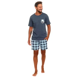 Pánské pyžamo 4416 Doctornap - z vysoce jakostní bavlny - světle modré tričko s krátkými rukávy - na přední straně ozdobené potiskem - kárované kraťasy s kapsami - certifikát OEKO-TEX Standard 100