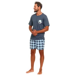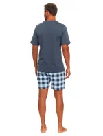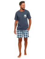 Pánské pyžamo 4416 Doctornap - z vysoce jakostní bavlny - světle modré tričko s krátkými rukávy - na přední straně ozdobené potiskem - kárované kraťasy s kapsami - certifikát OEKO-TEX Standard 100