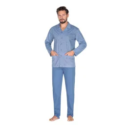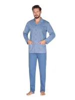 Pánské pyžamo 444 light blue plus REGINA - z vysoce jakostní bavlny - světle modrá košile s dlouhými rukávy - se vzorem - se zapínáním na knoflíky - na bocích kapsy - pohodlné dlouhé světle modré kalhoty