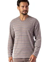 Pánské pyžamo 450 grey REGINA - z vysoce jakostní froté bavlny - pruhované tričko s dlouhými rukávy - pohodlné dlouhé šedé kalhoty