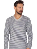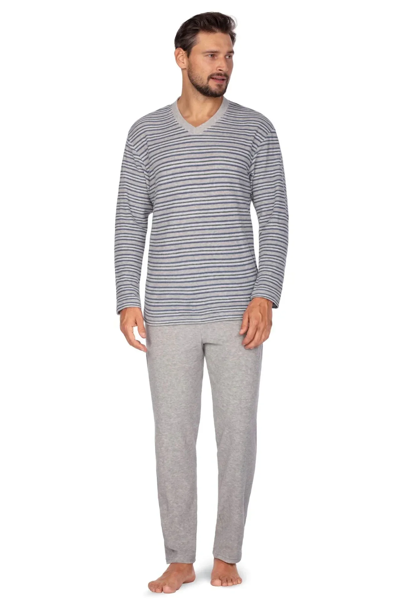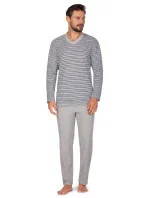 Pánské pyžamo 450 grey REGINA - z vysoce jakostní froté bavlny - pruhované tričko s dlouhými rukávy - pohodlné dlouhé šedé kalhoty