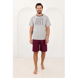 Souprava se skládá z trička s krátkým rukávem a kulatým výstřihem, které působí uvolněně a klasicky. Přední strana trička byla ozdobena estetickým potiskem, který dodává pyžamu moderní nádech. Doplňují je krátké pevné šortky, které jsou ideální pro teplejší dny. V pase jsou olemovány bavlněnou gumou, která zvyšuje pohodlí a zabraňuje podráždění.