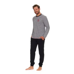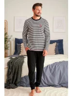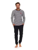 Pánské pyžamo 5234 plus Doctornap - vyrobené z velmi kvalitní a příjemné bavlny - černo-bílé pruhované tričko s dlouhými rukávy - na přední straně ozdobené potiskem - dlouhé tmavé kalhoty s kapsami - certifikát OEKO-TEX Standard 100