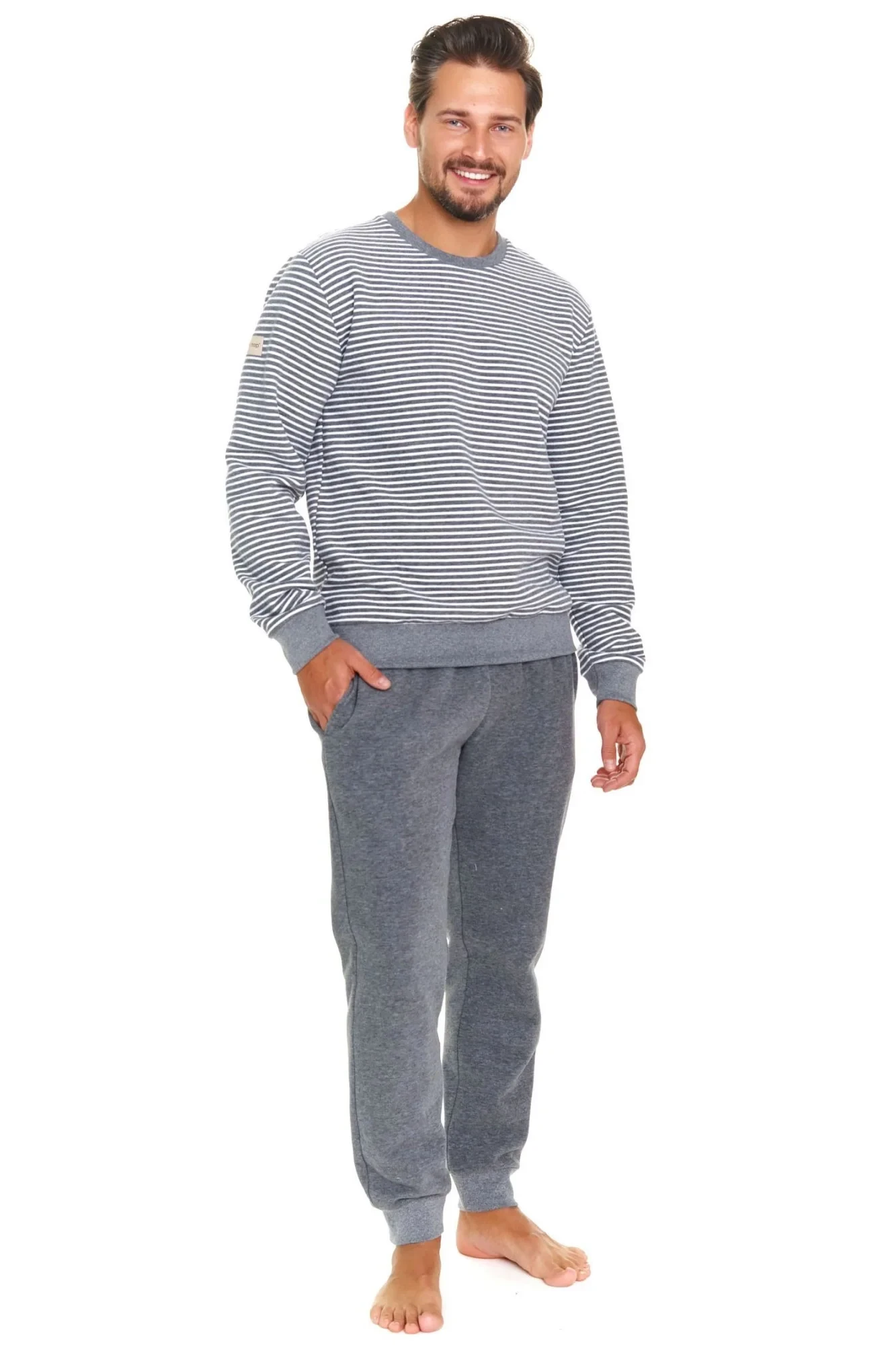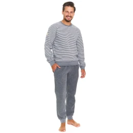 Pánské pyžamo 5248 dark grey Doctornap - z velmi kvalitní a příjemné bavlny - šedé tričko dlouhými rukávy - ozdobené pruhy - dlouhé šedé kalhoty s kapsami - materiálové složení trička: 80% bavlna + 20% polyester - certifikát OEKO-TEX Standard 100