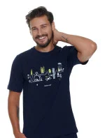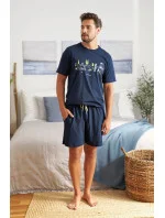 Pánské pyžamo 5355 Doctornap - z vysoce jakostní bavlny - tmavě modré tričko s krátkými rukávy - zdobené potiskem na přední straně - jednobarevné kraťasy - v pase zavazování na šňůrku - certifikát OEKO-TEX Standard 100