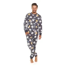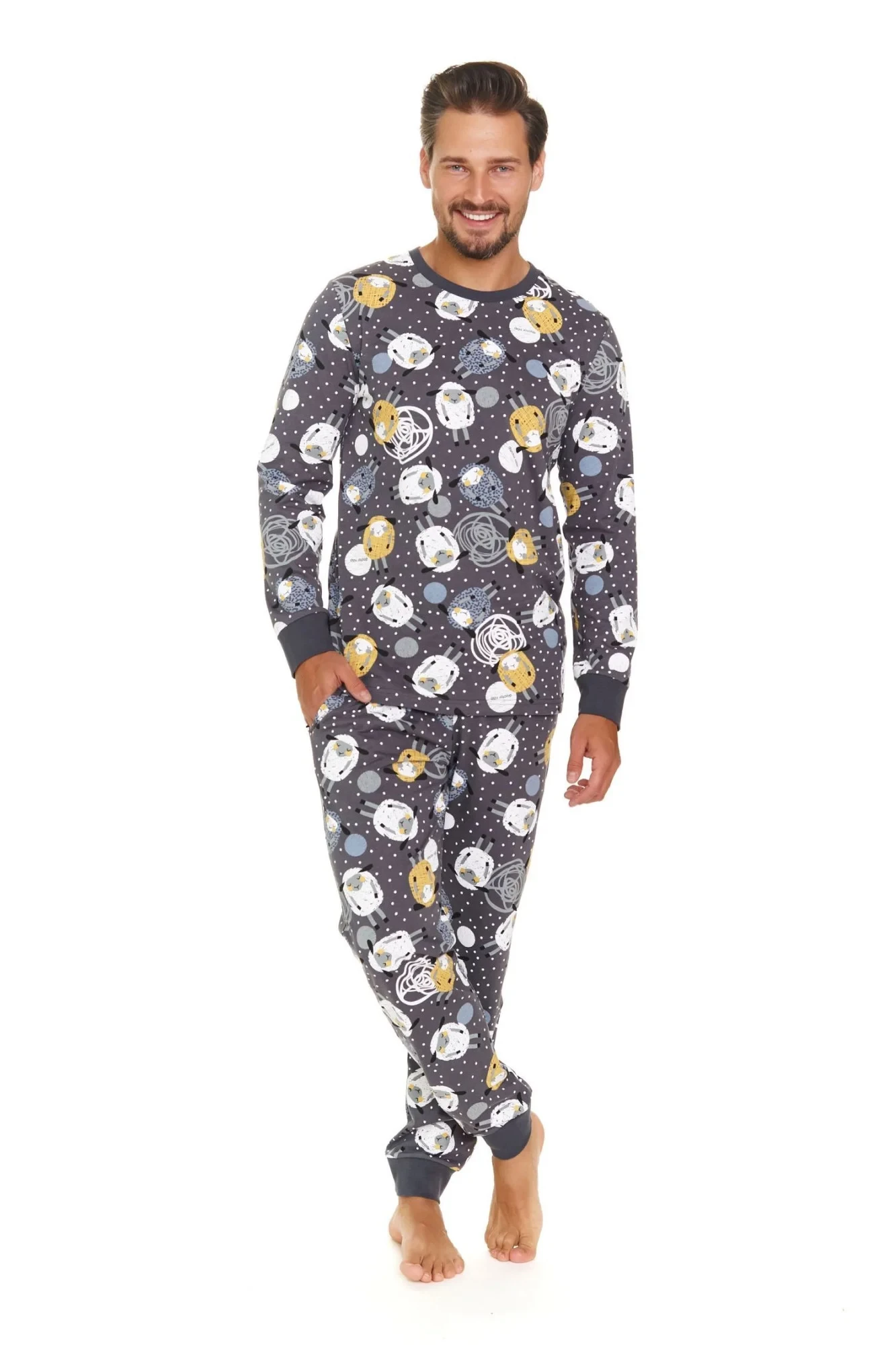 Pánské pyžamo 7109 Doctornap - z vysoce jakostní bavlny - grafitové tričko s dlouhými rukávy - dlouhé kalhoty s kapsami - s potiskem ovcí - certifikát OEKO-TEX Standard 100