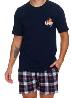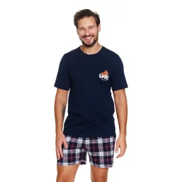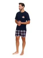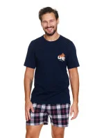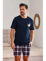 Pánské pyžamo 7201 wine Doctornap - z vysoce jakostní bavlny - tmavě modré tričko s krátkými rukávy - ozdobené potiskem na přední straně - kárované šortky s kapsami na bocích - certifikát OEKO-TEX Standard 100