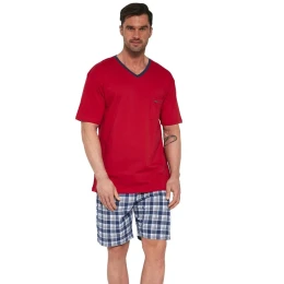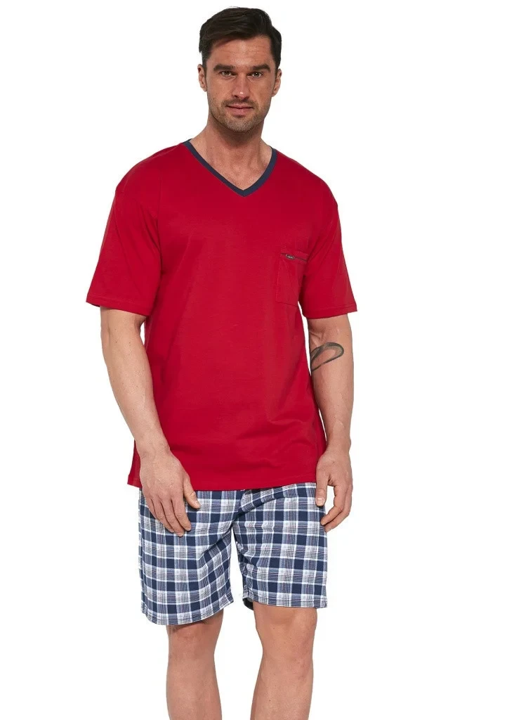 Pohodlné bavlněné pyžámko značky Cornette. Pyžamo se skládá z trika s krátkým rukávem a šortek. Triko má výstřih do V. Šortky mají kárový potisk a v pase pohodlnou širokou gumu.
