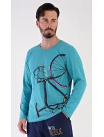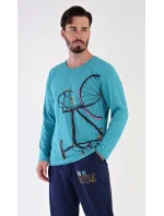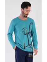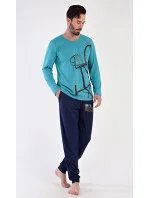 Dámské dlouhé bavlněné pyžamo Dominika. Dámské pyžamo se skládá z trika s dlouhým rukávem a dlouhých kalhot. Triko je jednobarevné, zdobené obrázkem motýla a květů. Květinový potisk se opakuje i na kalhotách, které mají v pase gumu a šňůrku na stažení, nemají kapsy. Použitý bavlněný materiál je poddajný a příjemný na dotek.