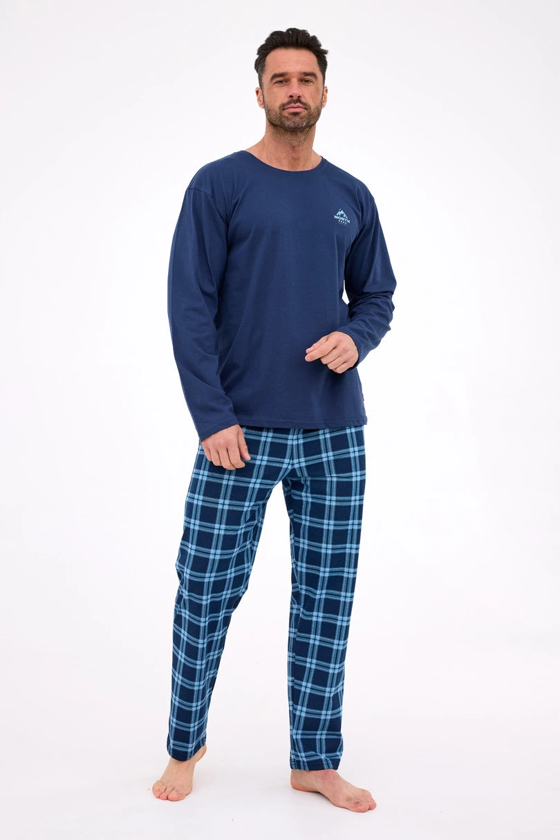 Pánské pyžamo DR 124/314 NORTH značky Cornette je kombinací pohodlí, kvality a klasického designu. Tričko s krátkým rukávem, vyrobené ze 100% měkké, prodyšné bavlny, má kulatý výstřih a decentní potisk na hrudi. Dlouhé kalhoty s módním kostkovaným vzorem jsou vyrobeny ze směsi 80 % bavlny a 20 % polyesteru, což zajišťuje odolnost a pohodlí. Elastický pas, lemovaný bavlnou, zaručuje dokonalé přizpůsobení bez otlaků. Toto pyžamo je ideální na spaní i domácí odpočinek.