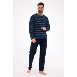 Pánské pyžamo DR 138 J/25 je pohodlná a stylová souprava navržená s ohledem na každodenní pohodlí. Tričko s dlouhými rukávy je vyrobeno ze 75 % z bavlny a 25 % z polyesteru, má nadčasový pruhovaný vzor a je zakončeno klasickým kulatým výstřihem. Soupravu doplňují pevné dlouhé kalhoty ze 100 % bavlny, které zajišťují měkkost, prodyšnost a volnost pohybu, a pohodlný elastický pas, který perfektně padne. Celá souprava je zabalena v elegantní krabičce, takže pyžamo je ideální i jako dárek.