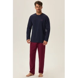 Pánské bavlněné pyžamo, dlouhé jednotné kalhoty, góra s dlouhými rukávy.