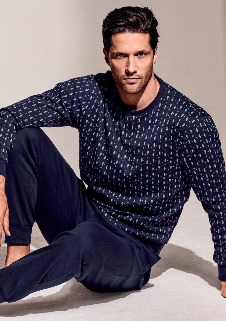 Dopřejte si pohodlí a klidné noci díky pyžamu Infiore. Vyrobeno je z měkké a prodyšné bavlny, která zajišťuje komfortní nošení i ve spánku. Svěží střih a univerzální design dělají z tohoto pyžama ideální volbu pro každodenní domácí relax i noční odpočinek. Kalhoty mají pohodlný střih s volným střihem a pružným pasem, vrchní díl v klasickém stylu přináší volnost pohybu a komfort při spánku. Díky svému stylu a kvalitnímu materiálu je pyžamo vhodné nejen jako praktický kousek do ložnice, ale i jako dárek.