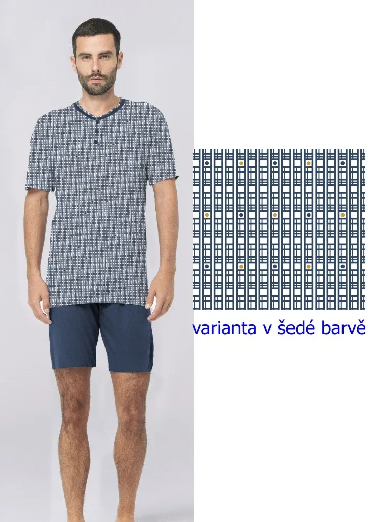 Pánské bavlněné pyžamo italské značky Karelpiu. Pyžamo ze 100% bavlny, je velmi příjemné a pohodlné. Tričko má výstřih do V a légu se třemi knoflíky. Na levé přední straně je našitá kapsička. Tričko má krátký rukáv. Kraťasy mají v pase pohodlnou pružnou gumu. Pyžamo je ušité z příjemné bavlny.
