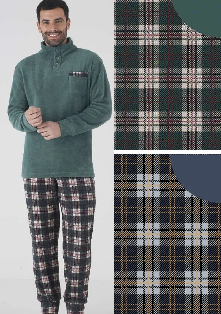Pánské pyžamo od italské značky Karelpiu. Pyžamo je jemné, lehké a hřejivé. Má zapínání u krku na tři knoflíky a vpředu našitou kapsičku. Rukávy jsou ukončené do manžety. Kalhotky mají v pase širší gumu.