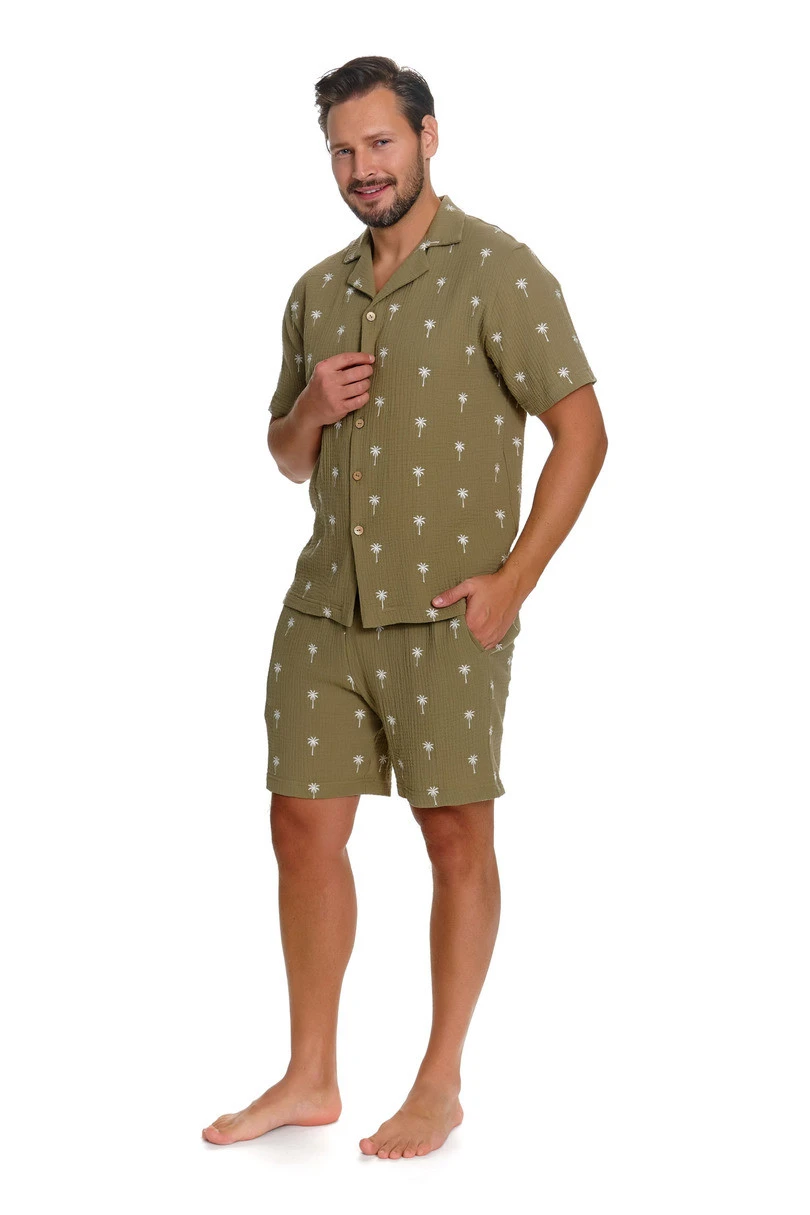 Pánské pyžamo PMB.7417 je klasickou a pohodlnou volbou pro muže, kteří si cení pohodlí a nadčasového stylu. Model se zapínáním na knoflíky zajišťuje snadné oblékání a praktičnost použití, takže je vhodný jako noční oděv i jako pohodlné domácí oblečení. Pyžamo je vyrobeno ze 100% kvalitní bavlny, je měkké, prodyšné a šetrné k pokožce. Přírodní tkanina umožňuje pokožce dýchat a zajišťuje tepelný komfort po celý rok. Další kapsy zvyšují funkčnost modelu a umožňují uložení drobných předmětů. Model PMB.7417 v sobě spojuje pohodlí, kvalitu a elegantní, mužný design - ideální volba pro každou noční akci.