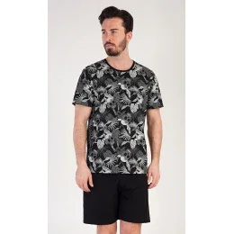 Pánské bavlněné pyžamo šotky Albert. Pánské pyžamo se skládá z trička s krátkým rukávem a krátkých šortkových kalhot. Tričko s kulatým výstřihem je potištěno. Šortky jsou bez kapes, mají gumu a šňůrku na stažení. Použitý materiál s podílem bavlny 100% je příjemný a poddajný na dotek. Pyžamo je vhodné i na denní nošení.