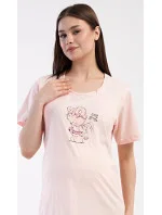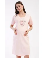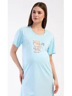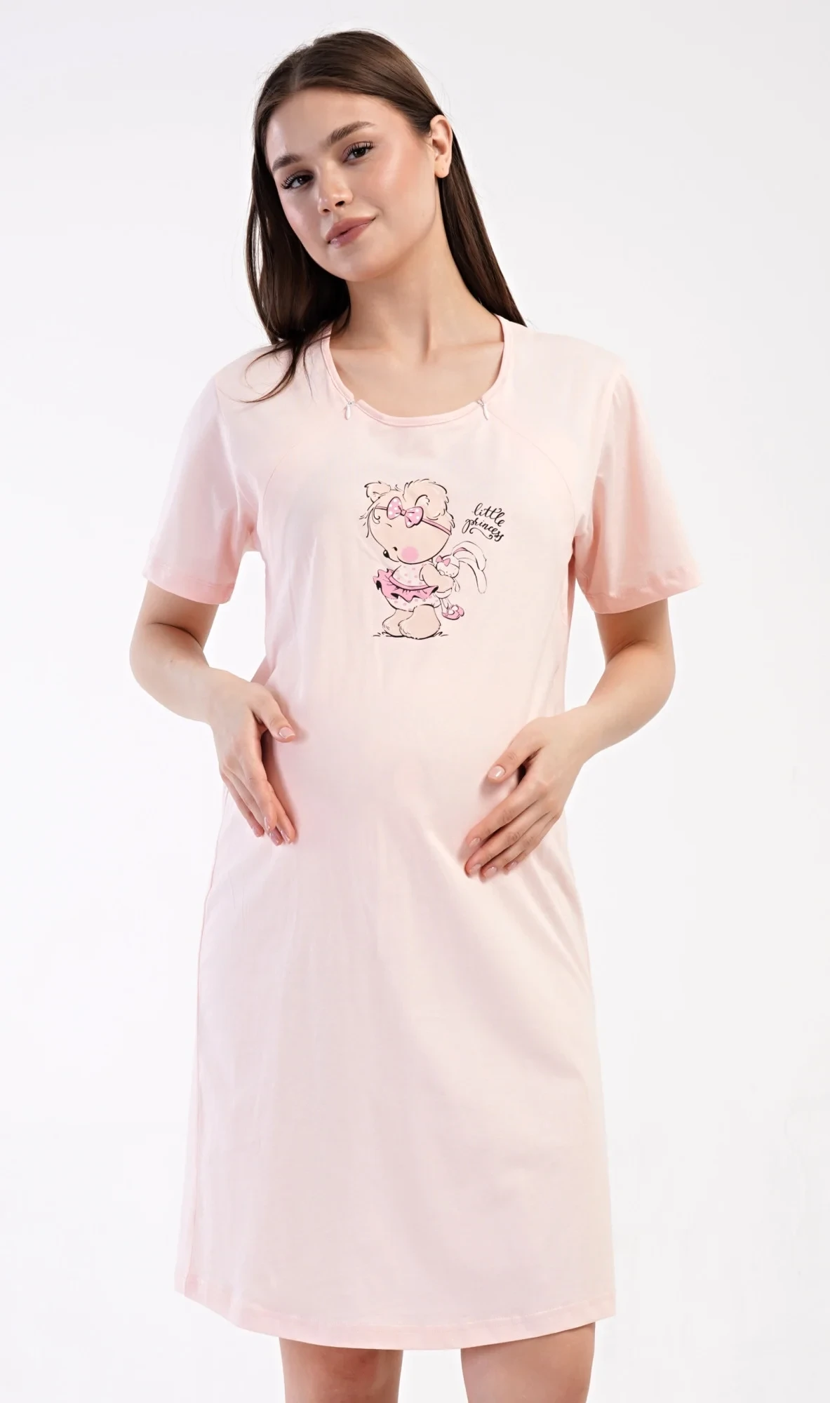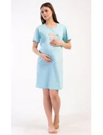 Dámská bavlněná mateřská noční košile Miláček. Noční košile je svým střihem určená na dobu těhotenství, do porodnice i ke kojení. Ke kojení slouží průstřihy po stranách košile, které jsou uzavíratelné na zip. Přední díl košile zdobí obrázek roztomilého medvídka. Použitý materiál s podílem bavlny 100% je příjemný a poddajný na dotek.
