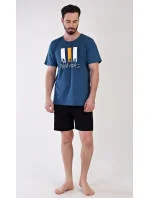 Pánské bavlněné pyžamo šortky Oliver. Pánské pyžamo se skládá z trička s krátkým rukávem a krátkých šortkových kalhot. Na jednobarevném tričku s kulatým výstřihem je nápis PARAMORE a obrázky rockové kapely. Tričko doplňují jednobarevné šortky, které mají v pase gumu a šňůrku ke stažení. Nemají kapsy. Použitý materiál je příjemný a poddajný na dotek. Podíl bavlny u trička a šortek je 100%. Pyžamo je vhodné i na denní nošení.