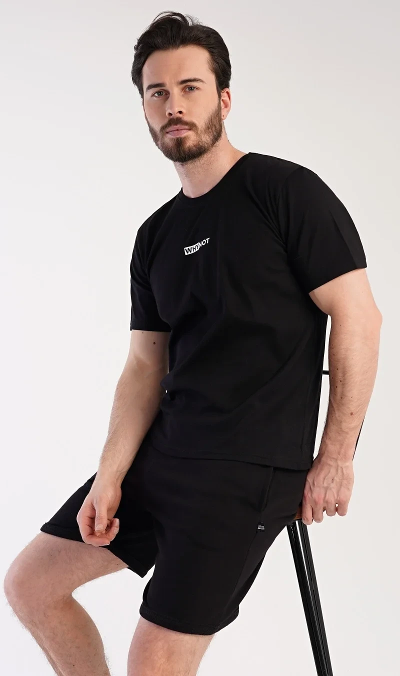 Pánská sportovní souprava Thomas. Pánská souprava se skládá z trička s krátkým rukávem a krátkých šortkových kalhot. Tričko s kulatým výstřihem zdobí drobný nápis. Jednobarevné šortky mají v pase gumu, šňůrku na stažení a praktické kapsy. Použitý materiál je příjemný a poddajný na dotek. Obsah bavlny u trička je 100% a u šortek 70%. Tuto multifunkční soupravu využijete na sport, volnočasové aktivity i na spaní.