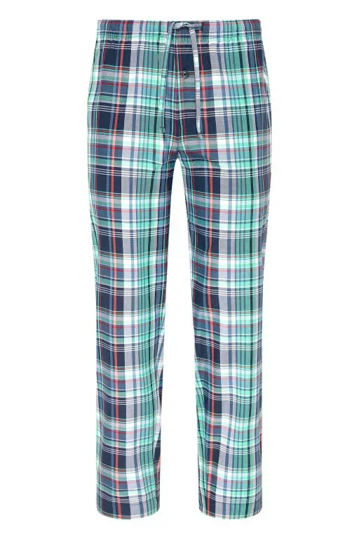 Pánské pyžamové kalhoty 500772H B90 čtyrkysovomodré káro - Jockey