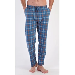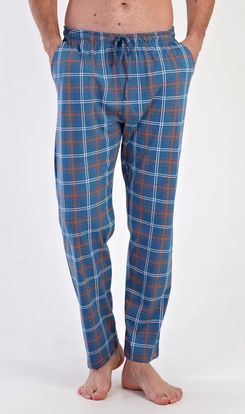 Pánské bavlněné pyžamové kalhoty Aleš. Kostkované kalhoty mají v pase gumu, šňůrku na stažení a praktické kapsy. Mateiriál s podílem bavlny 100% je příjemný a poddajný na dotek. Kalhoty jsou vhodné na denní nošení jako domácí kalhoty.