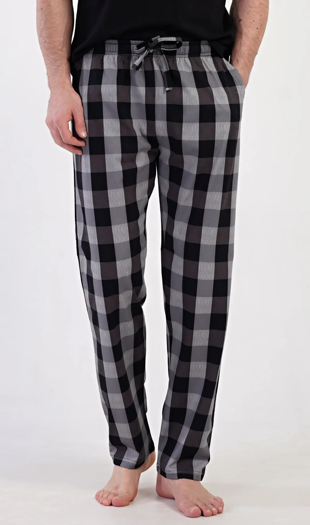 Pánské bavlněné pyžamové kalhoty Eda. Kostkované kalhoty mají v pase gumu, šňůrku na stažení a praktické kapsy. Mateiriál s podílem bavlny 100% je příjemný a poddajný na dotek.