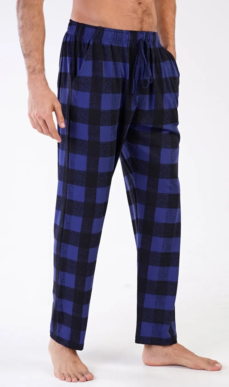 Pánské bavlněné pyžamové kalhoty John. Kostkované kalhoty mají v pase gumu, šňůrku na stažení a praktické kapsy. Mateiriál s podílem bavlny 100% je příjemný a poddajný na dotek. Kalhoty jsou vhodné i na denní nošení.