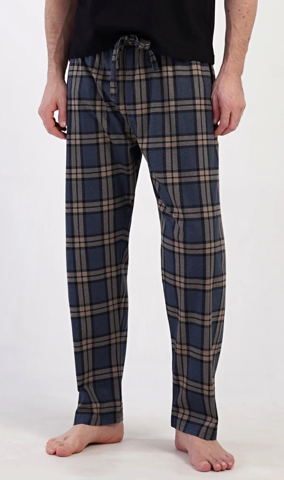 Pánské bavlněné pyžamové kalhoty Luis. Kostkované kalhoty mají v pase gumu, šňůrku na stažení a praktické kapsy. Mateiriál s podílem bavlny 100% je příjemný a poddajný na dotek.