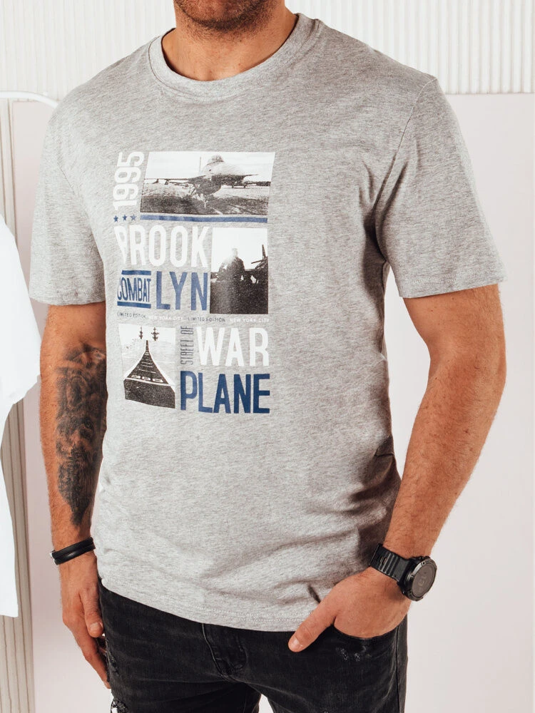 Pánské šedé tričko s potiskem FashionStreet RX5452