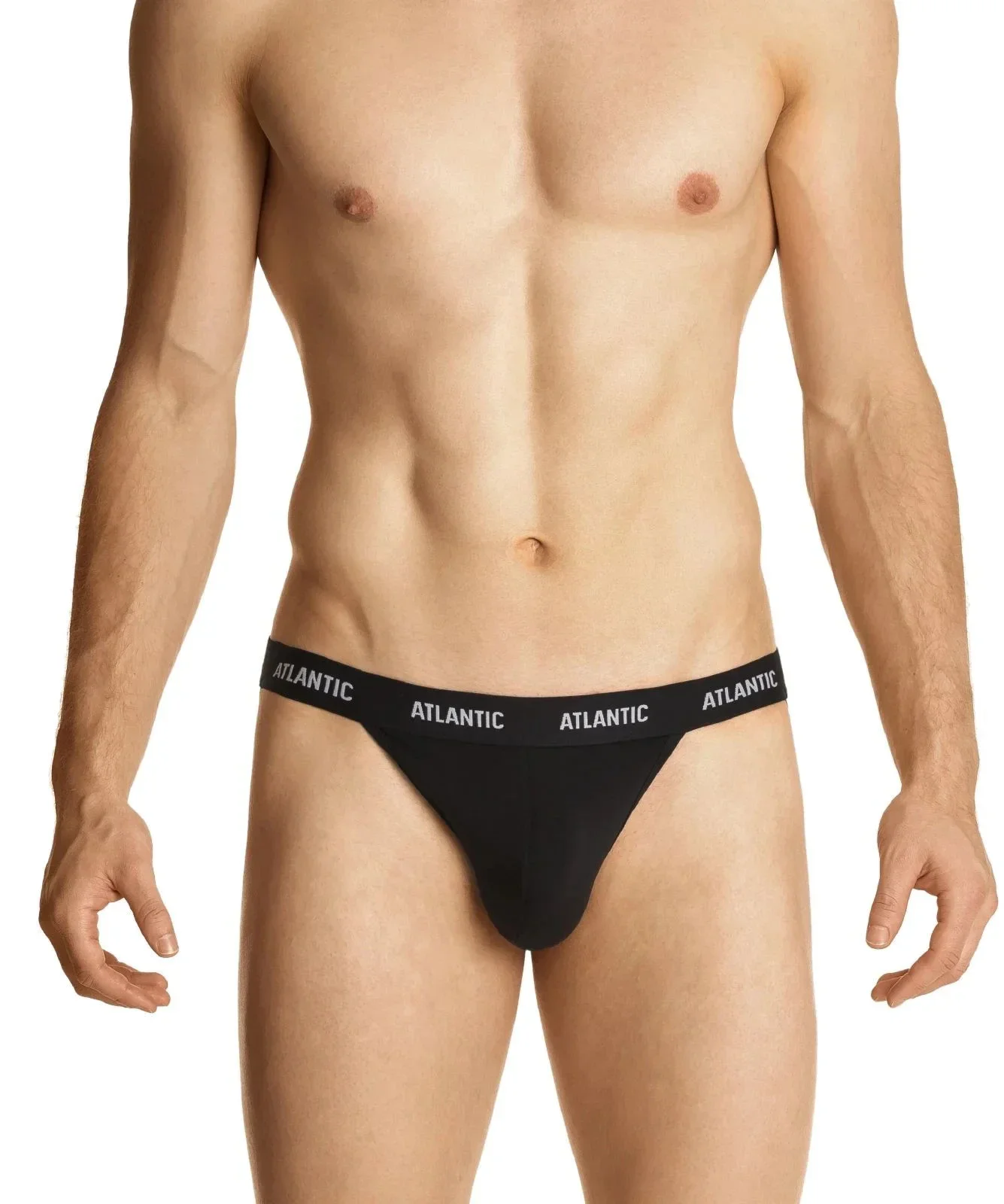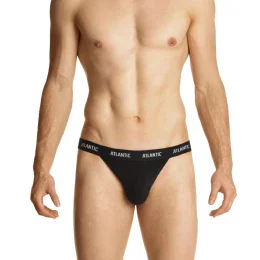 Erotické slipy 1571 Jockstrap black Atlantic - černá barva - z vysoce jakostní bavlny - nižší střih - guma s logem ATLANTIC - otevřená zadní část