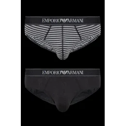 Pánské slipy 2PACK 111733 3F542 16844 černošedé s proužkem - Emporio Armani
